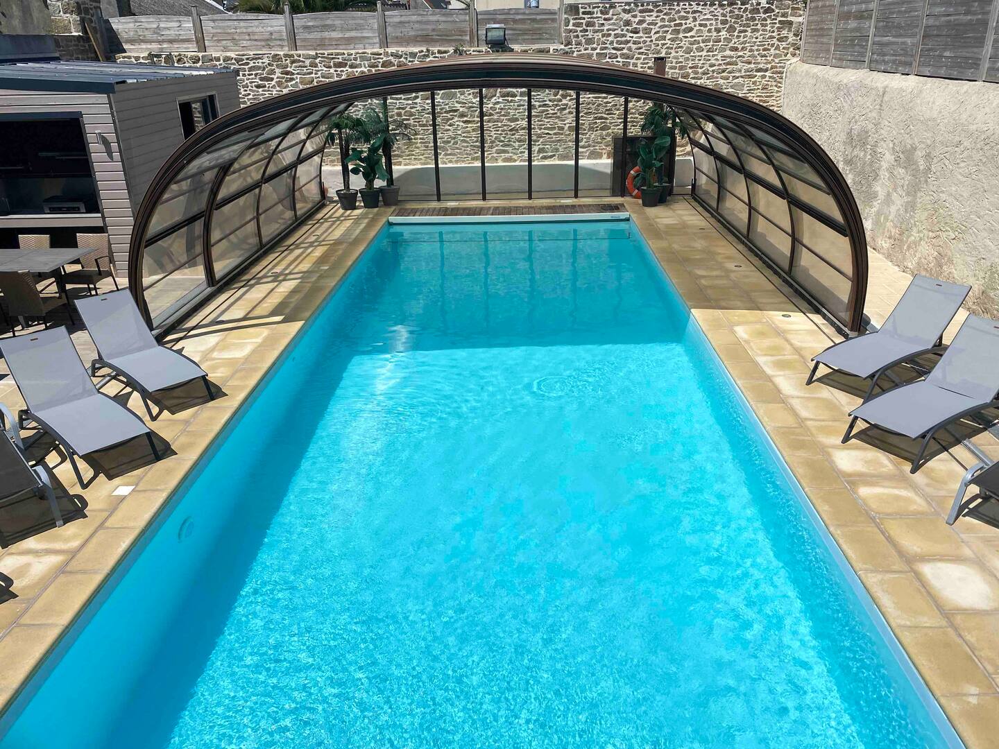 Profitez d'une piscine chauffée à 29°c bénéficiant d'une terrasse avec son espace détente et plancha pour les soirées d'été...