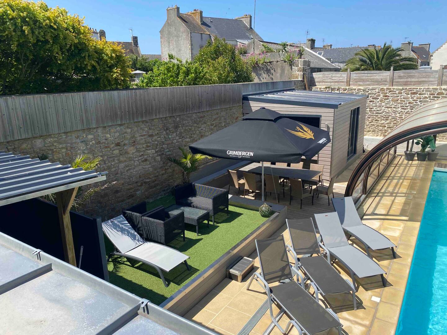 Profitez d'une piscine chauffée à 29°c bénéficiant d'une terrasse avec son espace détente et plancha pour les soirées d'été...